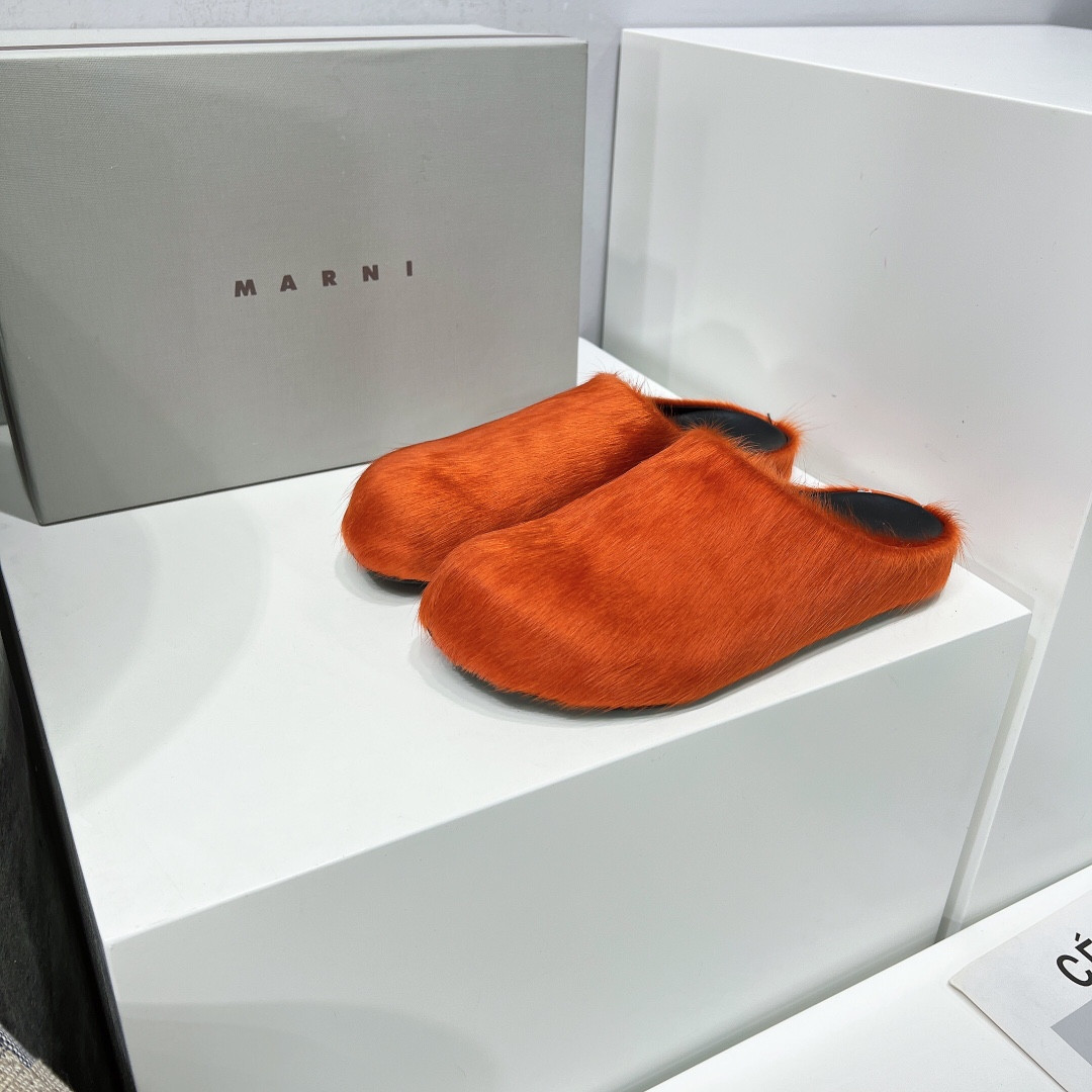 MARNI FUCHSIA LONG-HAIR CALFSKIN FUSSBETT SABOT